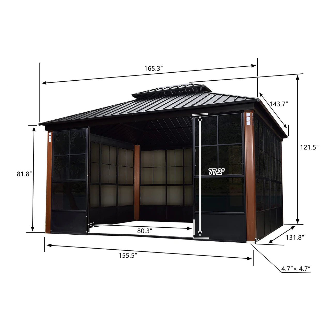 - HIGH QUALITY ALUMINUM MATERIAL: The whole frame is made of high quality thicken aluminum with a strong dark gray powder coated, and the roof is made of galvanized steel sheet panels, the whole system can be used for a long time.
