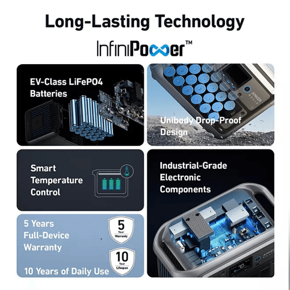 Designed with rugged construction and a compact form factor, the Anker Solix is easy to transport and built to withstand demanding conditions—ideal for both indoor backup and outdoor adventures.