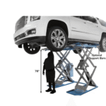 The Atlas SLP-9K is a commercial-grade, full-rise scissor lift designed for shops with limited ceiling height while still providing a powerful lifting capacity of 9,000 lbs.. With a maximum lifting height of 78 inches (6’6″), this lift is perfect for servicing SUVs, pickup trucks, and other vehicles in professional garages and workshops.