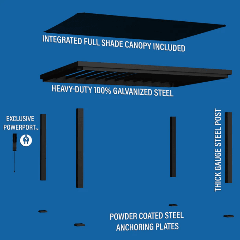 • Powder-coated galvanized steel structure protects against rust, corrosion, chipping, and UV damage.