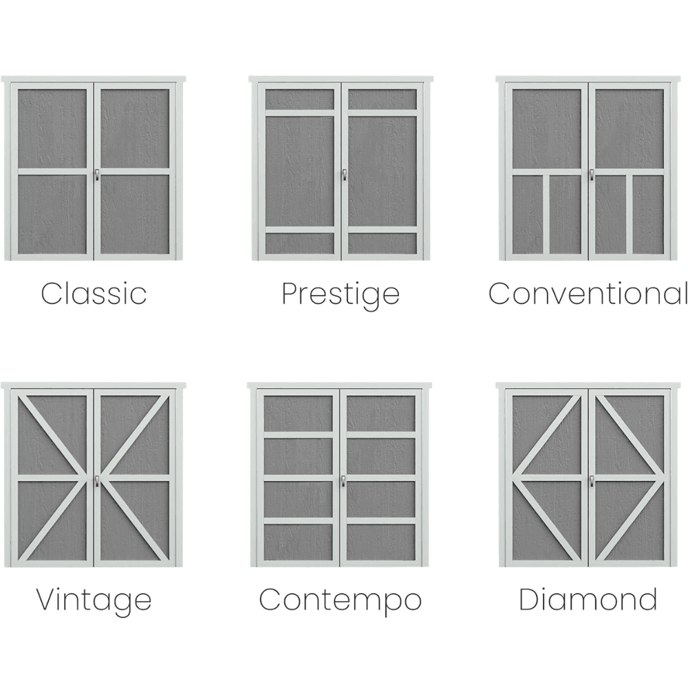 - 7 ft. tall sidewalls offer ample headroom and allow for easy storage of rakes, shovels, ladders, and long-handled tools.