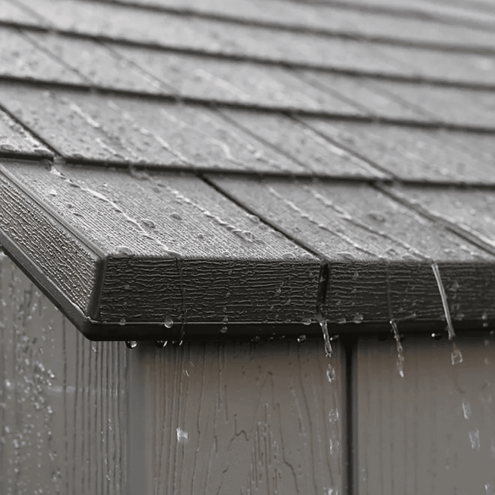 - High-pitched roof allows for efficient water and snow drainage, preventing buildup and ensuring long-term durability.