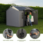 The Lifetime 10 ft. x 8 ft. Outdoor Storage Shed offers ample storage capacity for gardening tools, lawn equipment, outdoor furniture, and seasonal items. Its thoughtful design and durable materials make it an ideal choice for homeowners seeking both functionality and style in an outdoor storage solution.