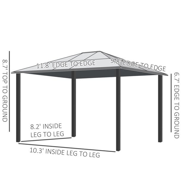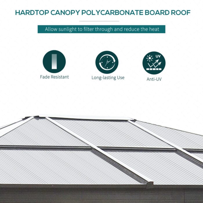 Outsunny 12′ x 10′ Aluminum Patio Gazebo Canopy w/ Polycarbonate Hardtop Roof