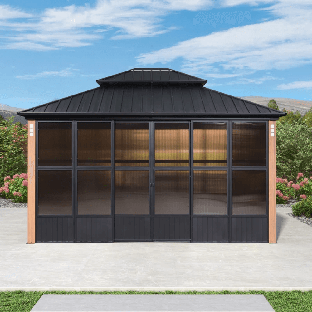 Elevate your outdoor living experience with this Hardtop Gazebo & Sunroom – where style meets functionality for year-round comfort!