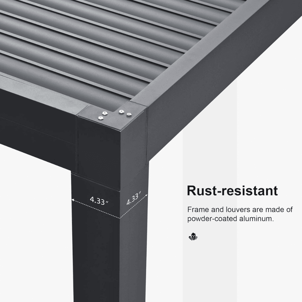 Upgrade your outdoor living experience with the PURPLE LEAF 12′ x 12′ Adjustable Louvered Pergolamodern, durable, and designed for all-weather comfort!