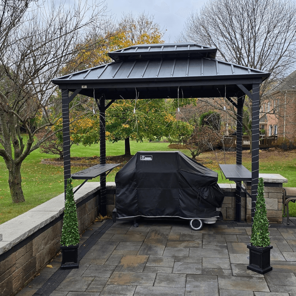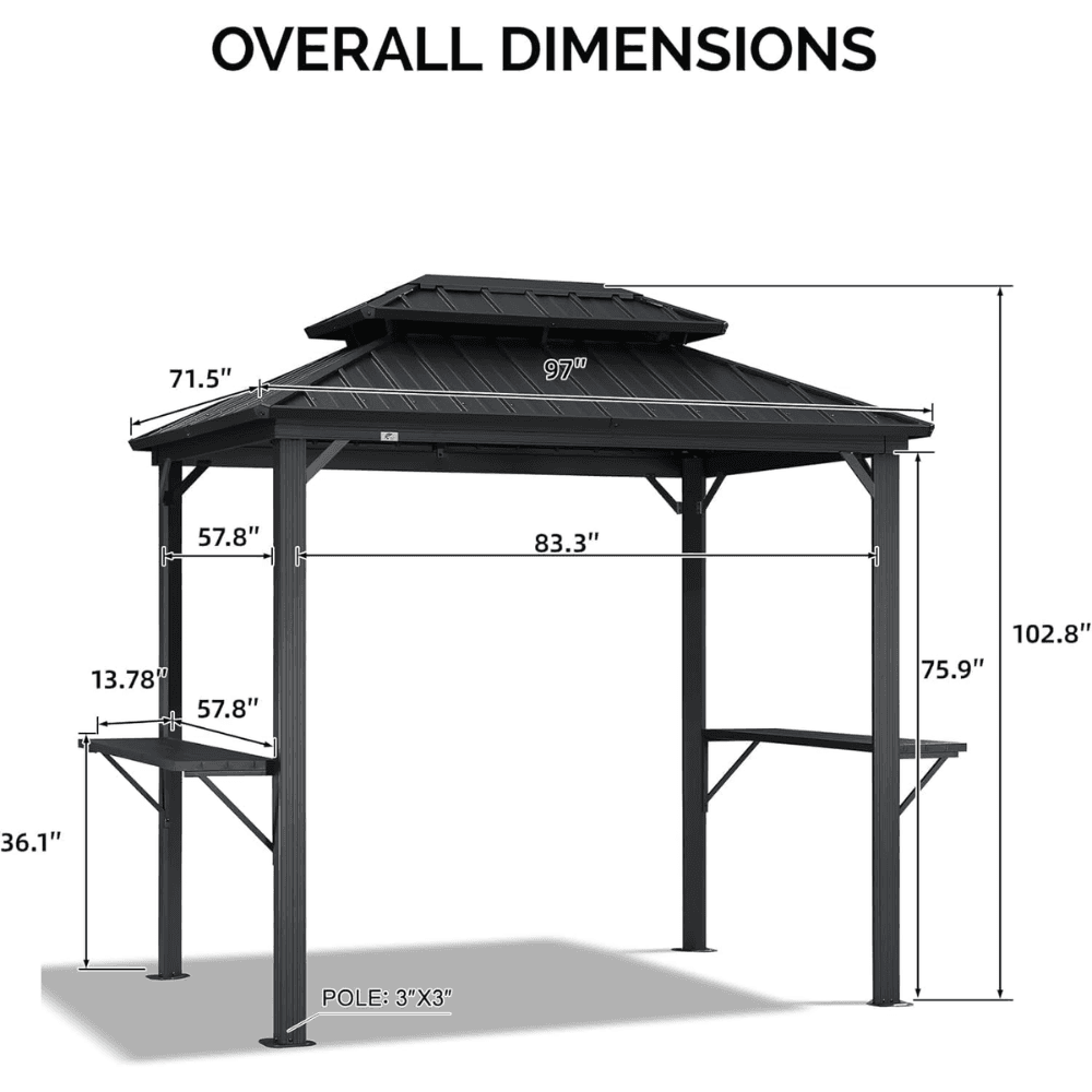 - 6′ x 8′ size provides 48 sq. ft. of shaded space, accommodating most BBQ grills.