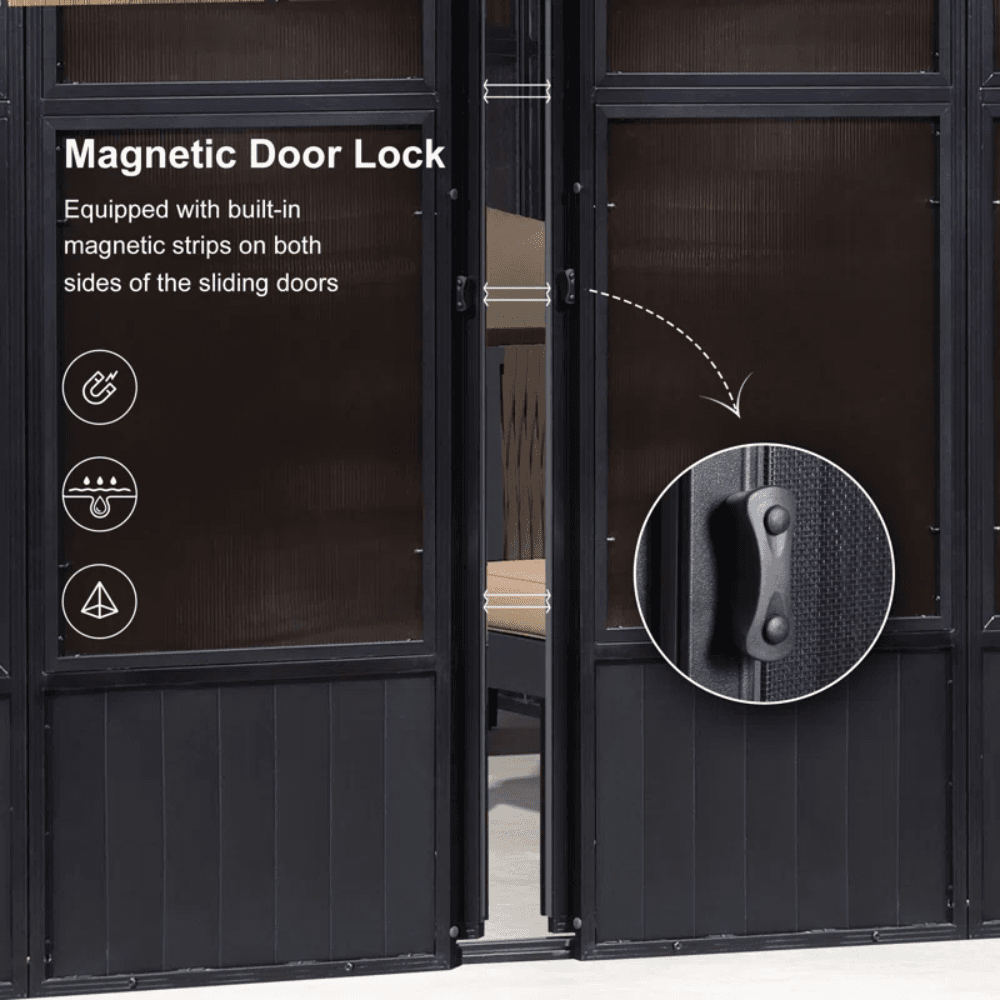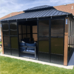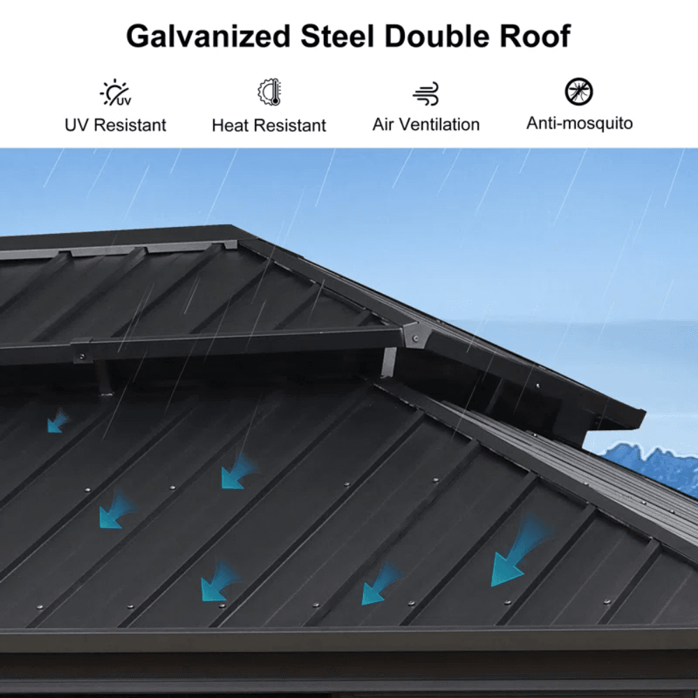 • Material: Aluminum frame with a galvanized steel hardtop roof
