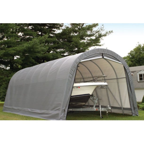The ShelterLogic 15 x 28 x 12 Round Top Shelter is perfect for taller items, such as vans, boats, or trucks. The round top offers additional headroom while the wide base will accommodate almost any vehicle. Suitable for most areas, this canopy is made of a powder-coated steel frame and a waterproof cover.