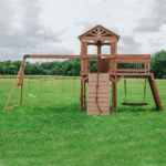 Crafted from high-quality, weather-resistant wood, this durable swing set is built to withstand the elements while providing years of safe and exciting play. With a sturdy frame, reinforced structure, and ASTM-certified safety features, parents can feel confident knowing their children are playing on a secure and reliable playset.