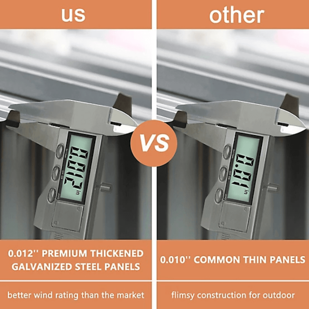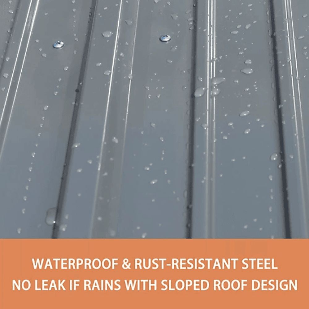 Designed with galvanized steel construction, ventilation panels, and a lockable door, this spacious storage shed ensures long-lasting durability, security, and proper air circulation—making it an ideal addition to any backyard, garden, or patio space.