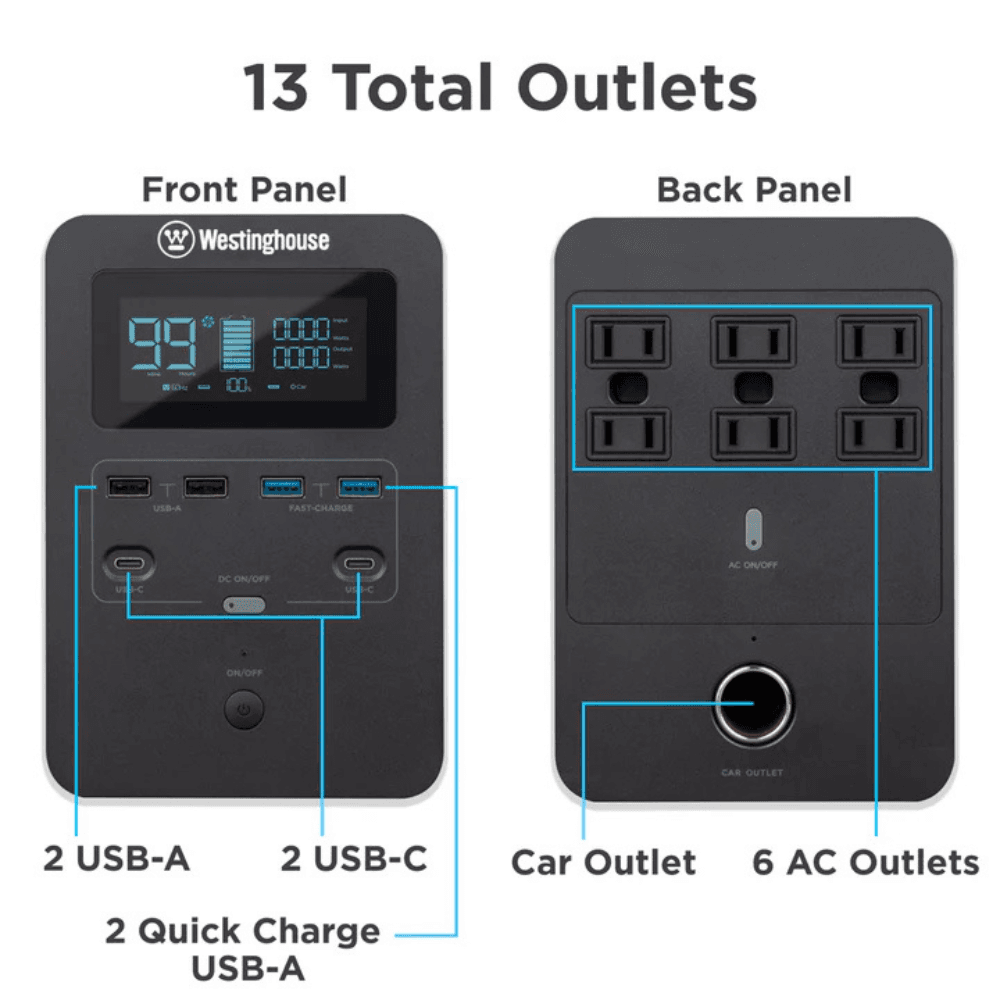 Features a variety of output ports including standard AC outlets, USB ports, and a DC port. This versatility allows you to power or charge laptops, smartphones, lights, and more—all from one unit. - Pure Sine Wave Inverter: