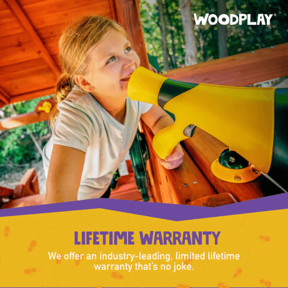 The Woodplay Lion’s Den Combo A is a fun-filled, feature-packed playset that keeps kids active, engaged, and entertained while providing a safe and exciting outdoor play space.