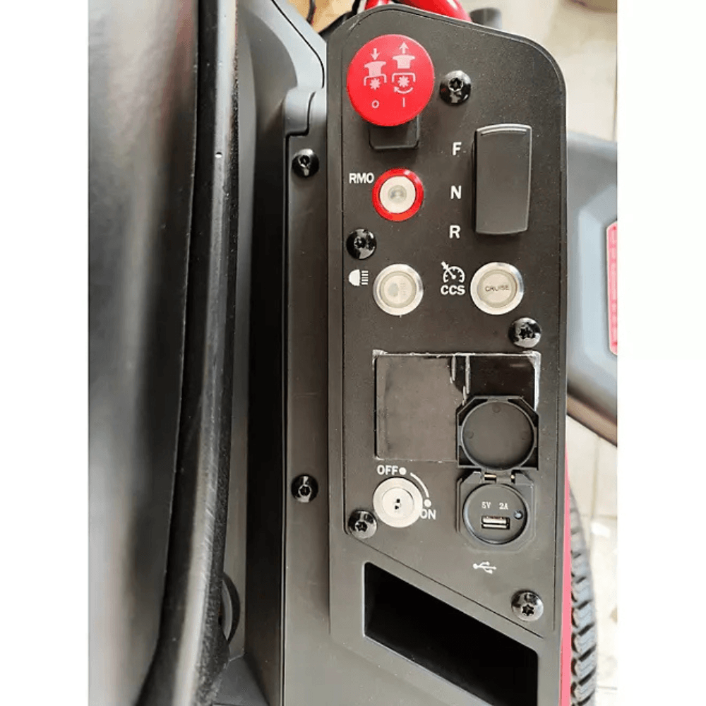The easy-to-use control panel and digital dashboard provide real-time information such as battery status, speed, and runtime. This smart interface ensures you’re always in control of your mowing experience. - Ergonomic Operator Station: